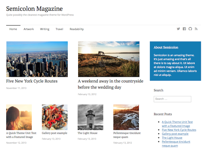 Semicolon is a clean, responsive, and easy-to-use magazine style theme that makes publishing on the web a snap.