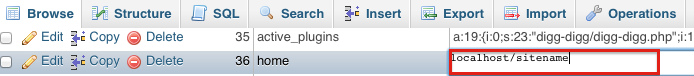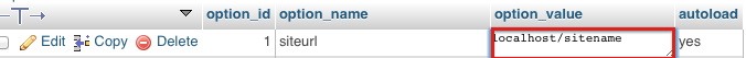 Once on the next screen, you should see a field called option_name. Beneath that, there should be something called siteurl. Click the Edit link to the lefthand side of this row.