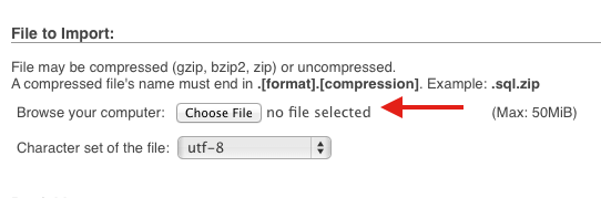 Go back into your cPanel and click on phpMyAdmin. Next, select the MySQL database you created in the previous step. You’ll notice that it doesn’t have any tables. This is where you want to plug in your WordPress info. To do this, click on Import.
