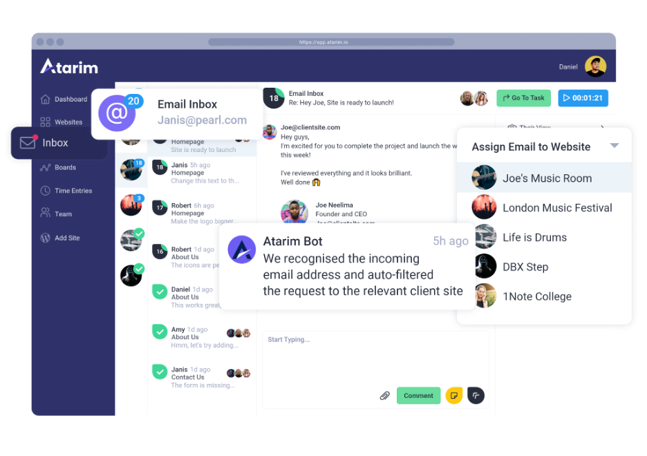 If you still prefer using email for content delivery, then Atarim also steps in as the best solution — their unified inbox, created specifically for web creators, will make email communication much easier!
