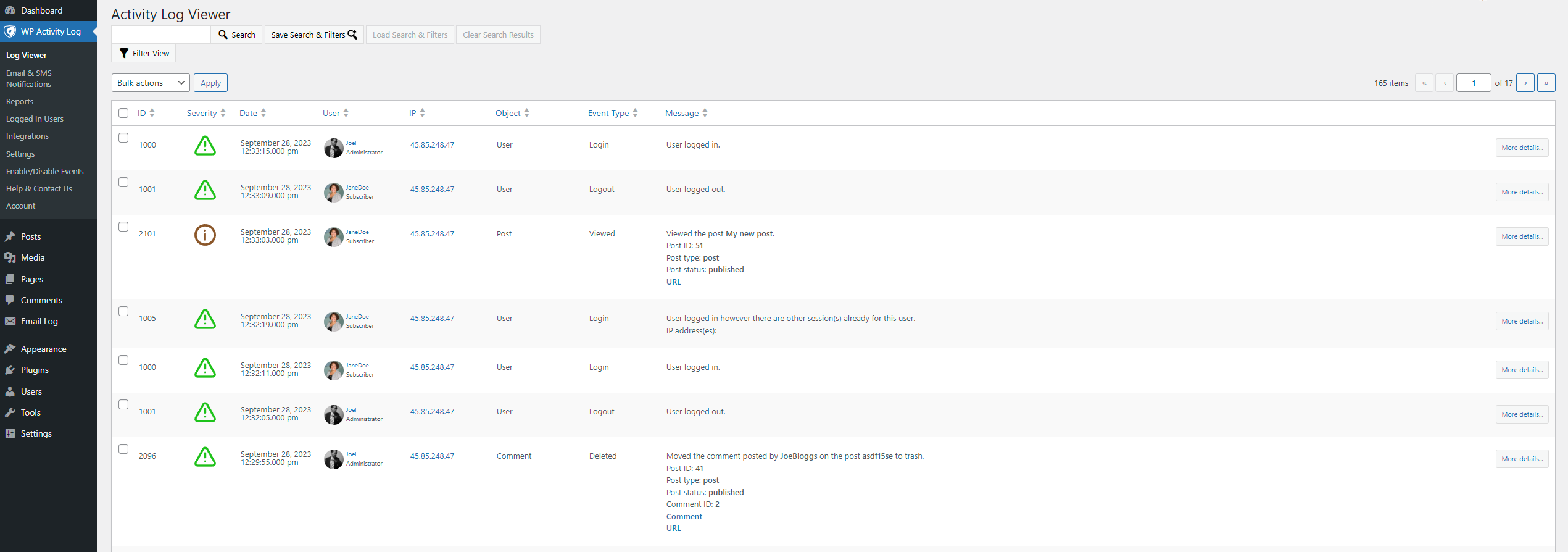 Essentially, this gives you a running summary of everything that happens on your site. While this might seem like a lot of information to deal with, it can be crucial for maintaining a secure site that runs smoothly. This can be especially useful if you’re working with a large team of administrators, or your site has a large amount of traffic.
